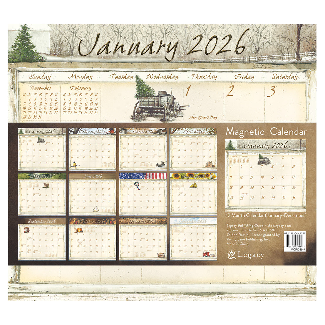 Legacy's Magnetic Calendar Pad is the perfect companion for an office filing cabinet or home refrigerator. Printed on premium paper, each month page is uniquely designed on easy tear away sheets. A magnetic strip is attached for easy hanging. Size: 9.375" x 8.375". Made in China.
