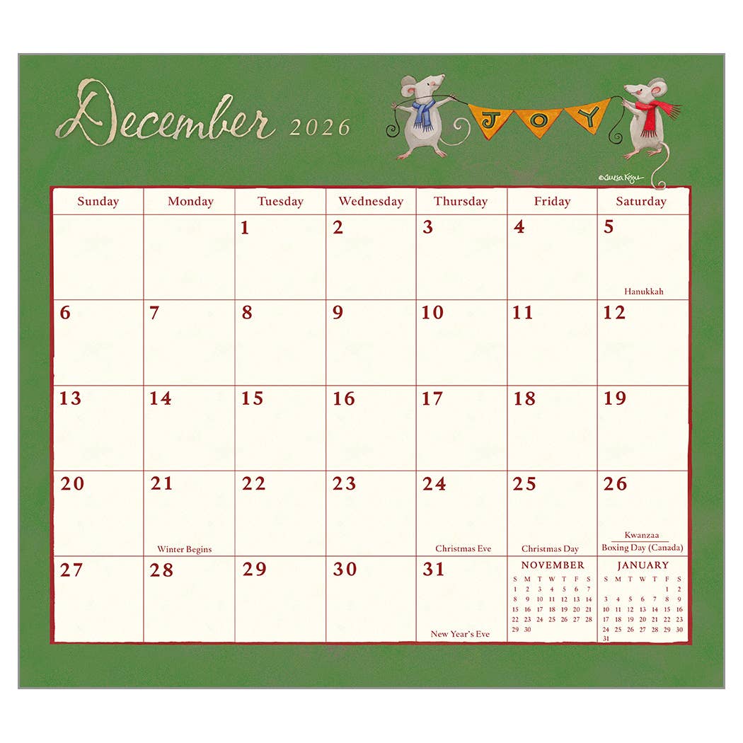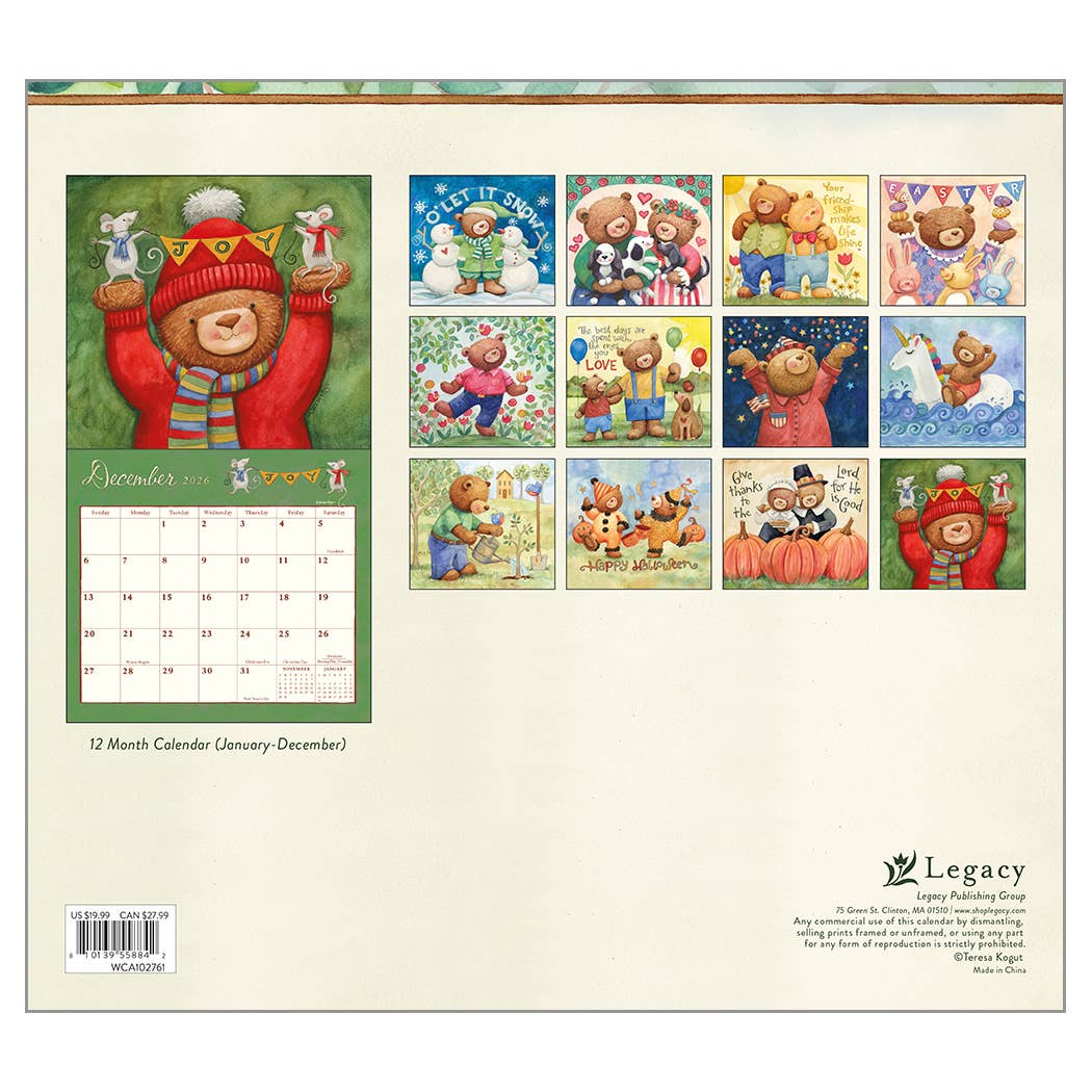 At Legacy, we believe life should be beautiful! Spend your year surrounded by unique art coupled with the organization of thoughtfully designed pages. Printed on premium linen embossed paper, our best selling calendars are reinforced with a brass grommet and are packaged in a fully designed protective paper sleeve, showcasing the cover, all 12-month images, and a sample calendar spread. Size: 13.375"x 12". Be sure to order by May 31st to get this amazing EARLY BUY pricing - regular price is $10.00 per calendar! Made in China.