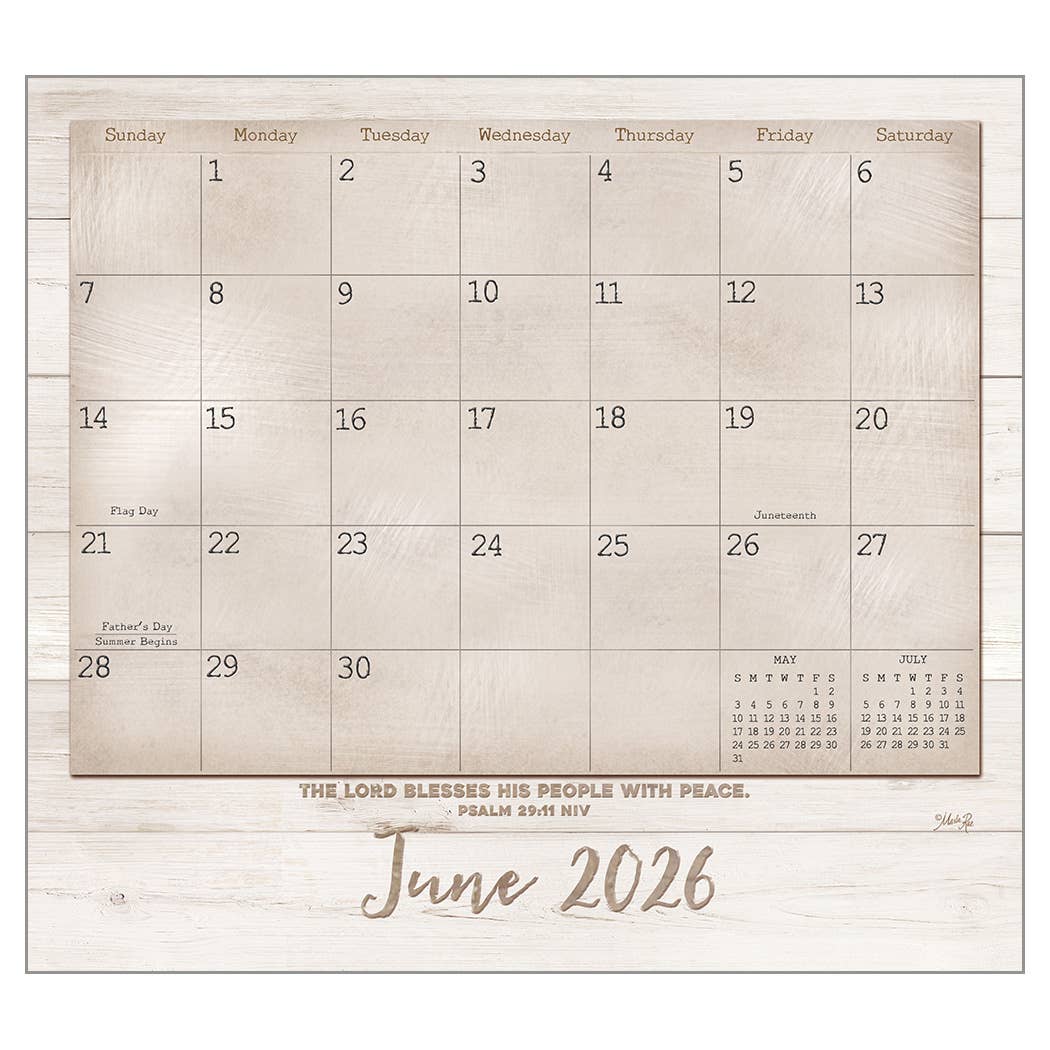 At Legacy, we believe life should be beautiful! Spend your year surrounded by unique art coupled with the organization of thoughtfully designed pages. Printed on premium linen embossed paper, our best selling Scripture calendars are reinforced with a brass grommet, feature a scripture on each month and are packaged in a fully designed protective paper sleeve, showcasing the cover, all 12-month images, and a sample calendar spread. Size: 13.375"x 12". Be sure to order by May 31st to get this amazing EARLY BUY pricing - regular price is $10.00 per calendar! Made in China.