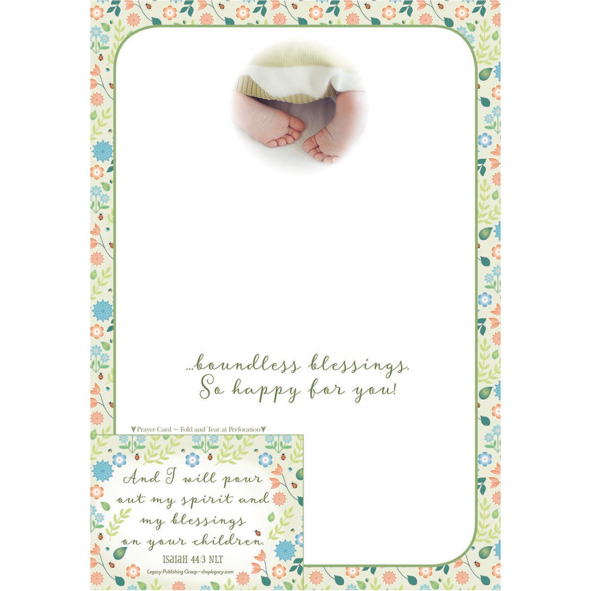 Legacy’s Prayer Greeting Card has inspirational artwork with scripture, a removable prayer card and a coordinating envelope. Simply tear off the prayer card at the perforation and tuck it into your Bible or wallet. It’s two gifts in one! Size: 4.875” x 6.75”. Prayer card size: 2 7/16” x 3 3/8”. Made in the USA.
