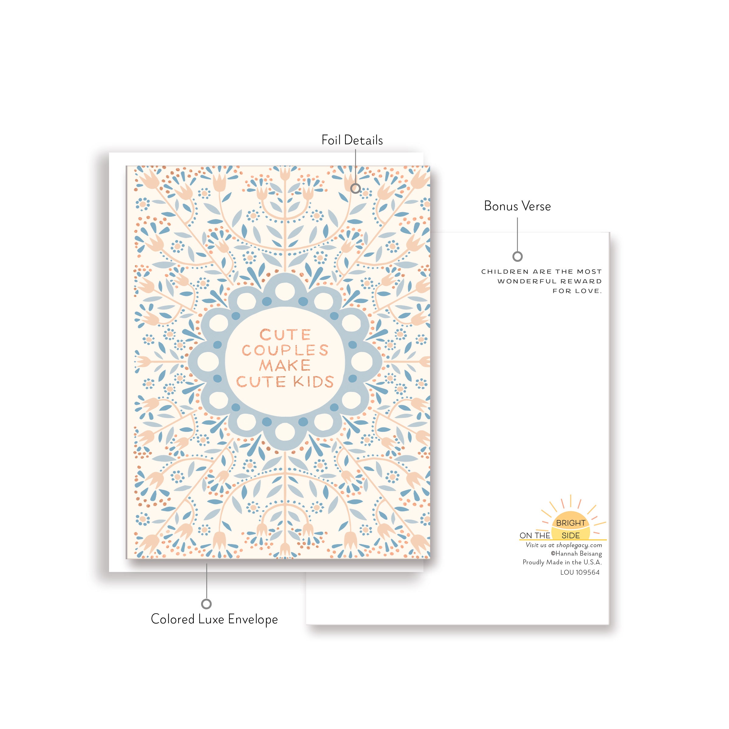 On the Bright Side's Boutique size cards are printed on high quality paper, include stunning Hot Foil Details and most include a bonus verse on the back of the card. They come with a Luxe Colored Paper envelope and packaged in cello. Card size: 4.25" x 5.5". Env: 4.3125" x 5.75" (A2). Made in the USA.