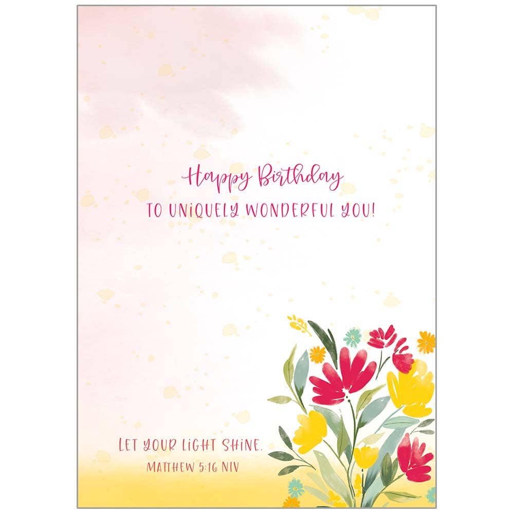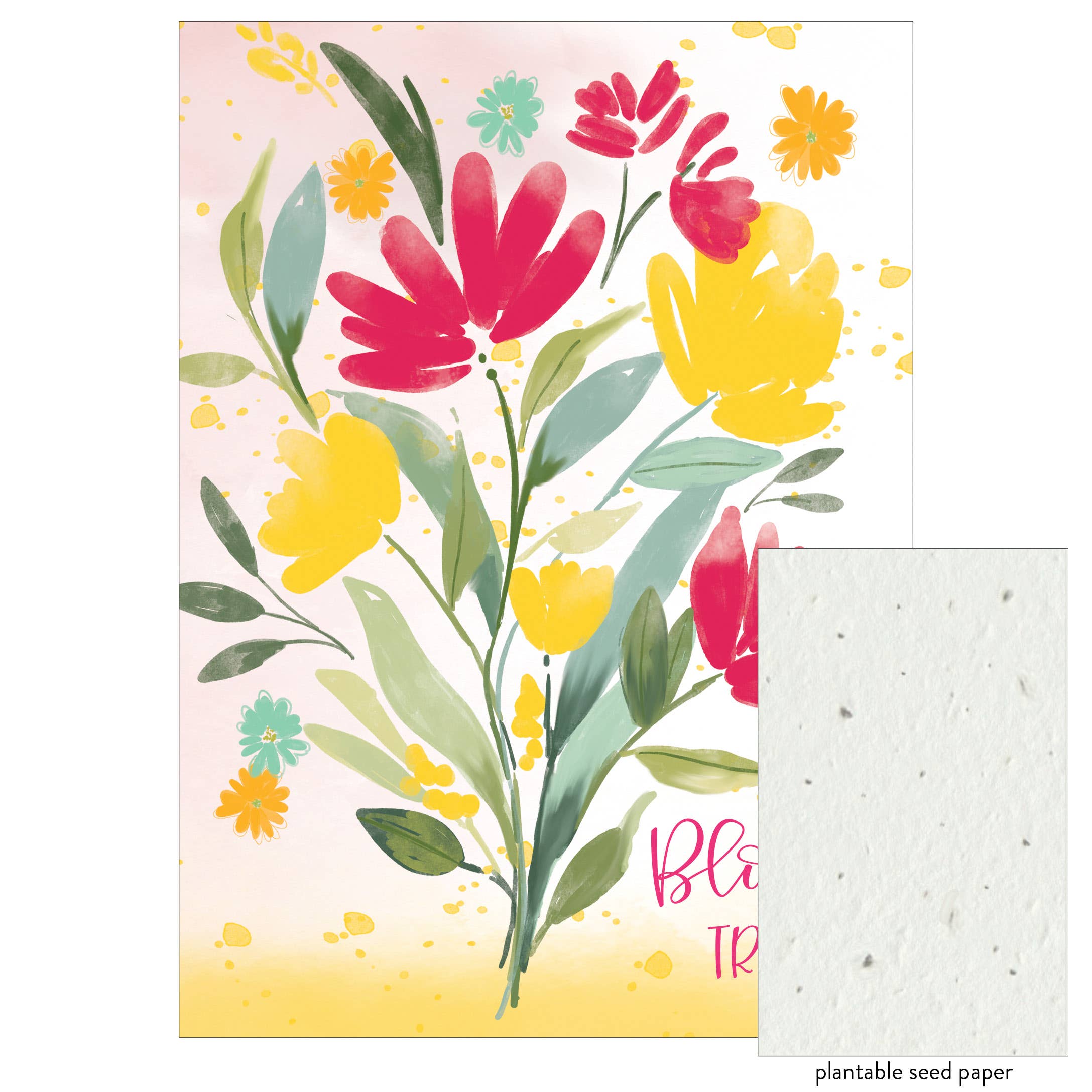 Our Flower Greeting Cards are a card and a gift all in one. The cards are designed inside and out and contain a scripture verse and are printed on rich, embossed paper with a deluxe envelope. A gift of a piece of seed paper is included in a vellum envelope. When you plant the paper, non-invasive wildflowers will grow so you can plant it and share your flowers with a friend. Interactive online prayer experience also included. Greeting Card Size: 4-7/8” x 6-3/4”. Flower Seed Paper Size: 2-1/16” x 3-3/8”. Made in the USA.