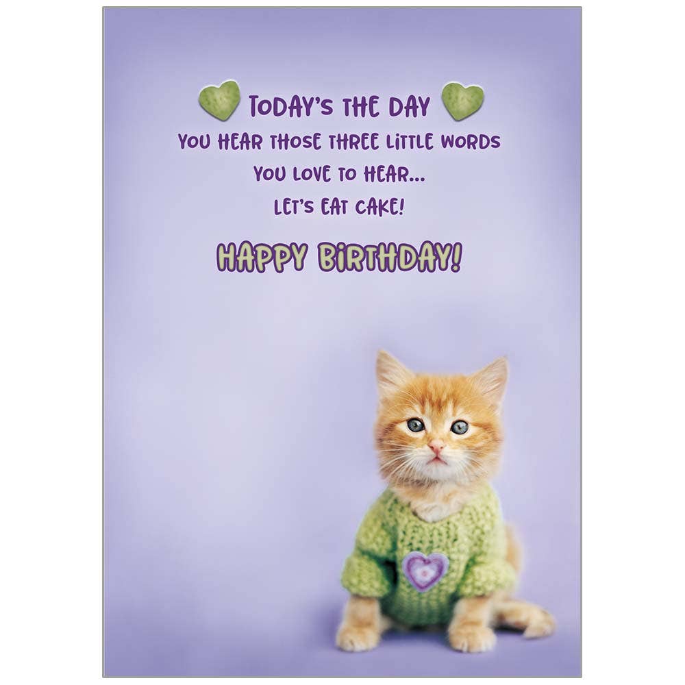 Kitten With Green Sweater - Faith Birthday Fun Card