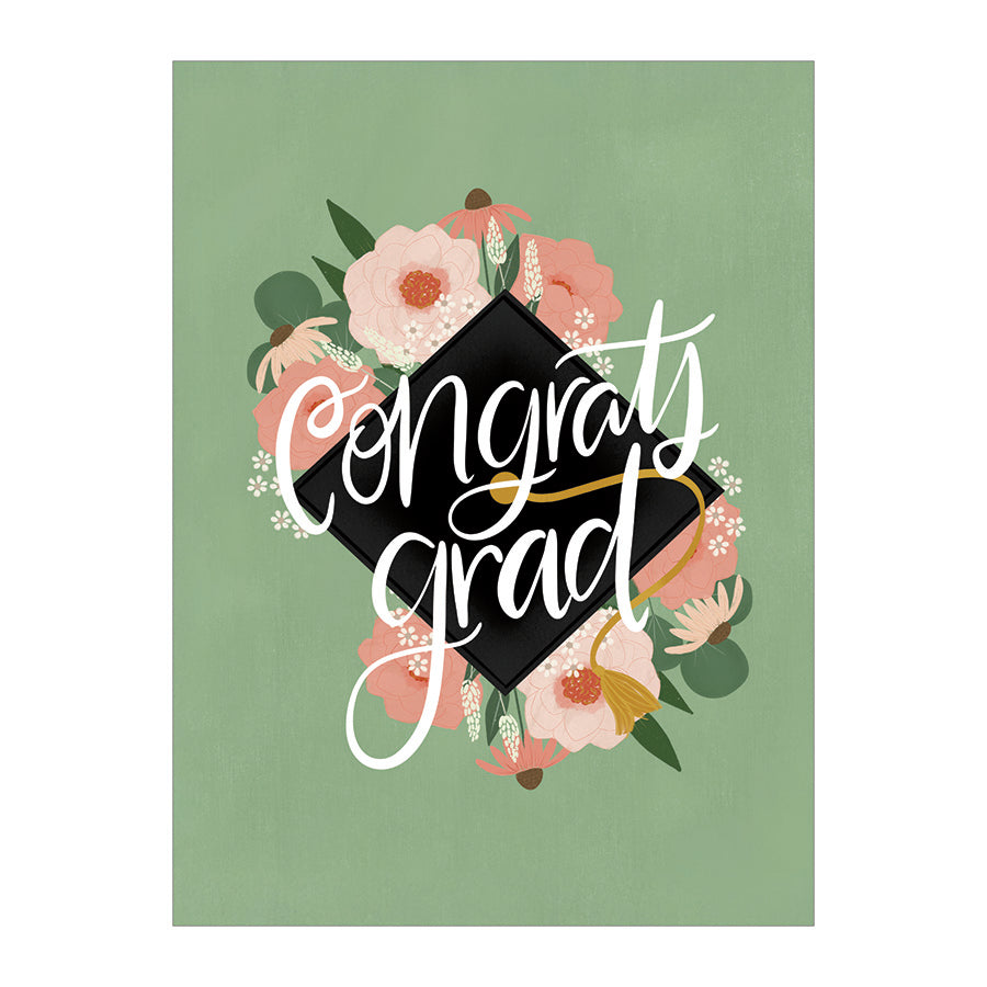 Grad Cap on Green - Graduation Card