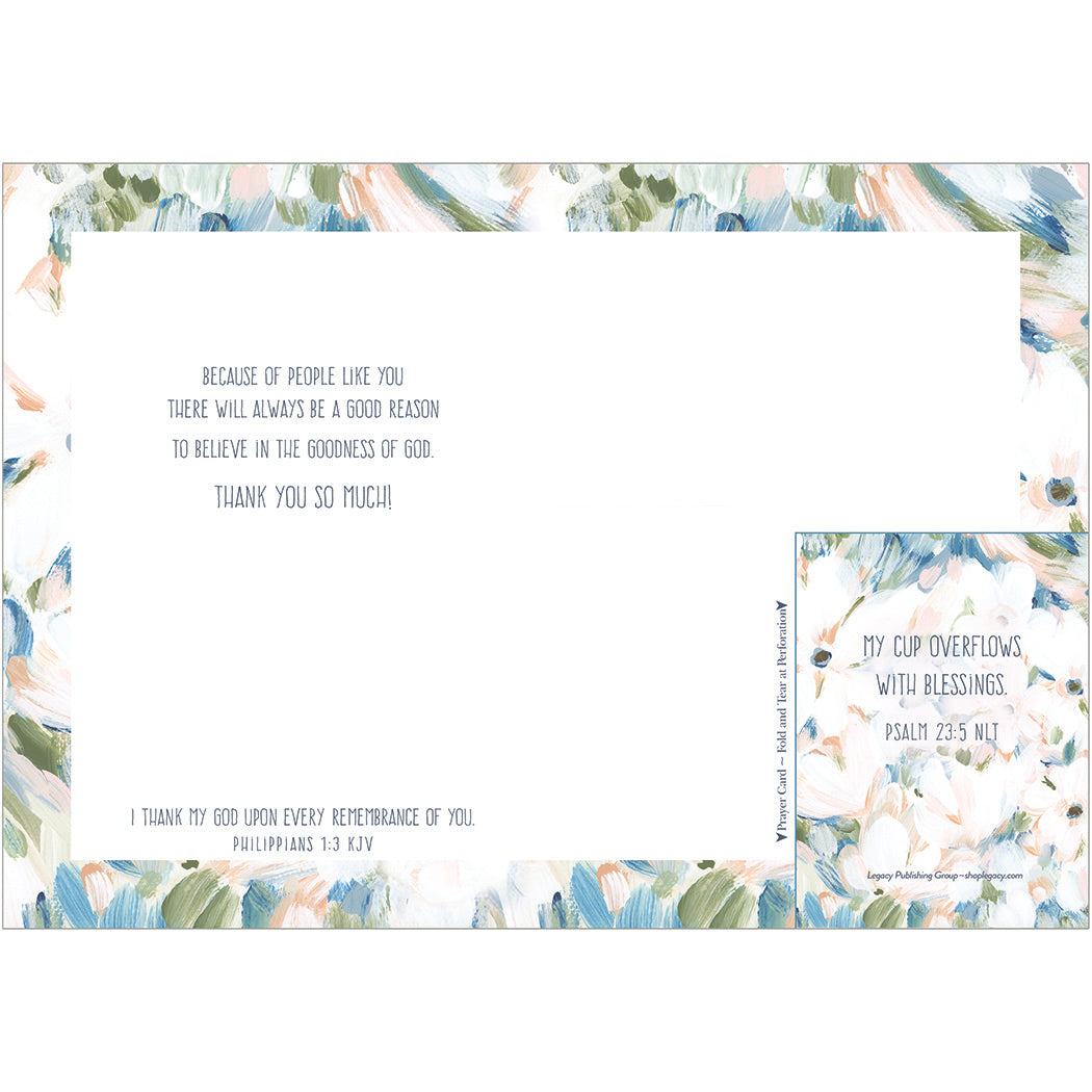 Legacy’s Prayer Greeting Card has inspirational artwork with scripture, a removable prayer card and a coordinating envelope. Simply tear off the prayer card at the perforation and tuck it into your Bible or wallet. It’s two gifts in one! Size: 4.875” x 6.75”. Prayer card size: 2 7/16” x 3 3/8”. Made in the USA.
