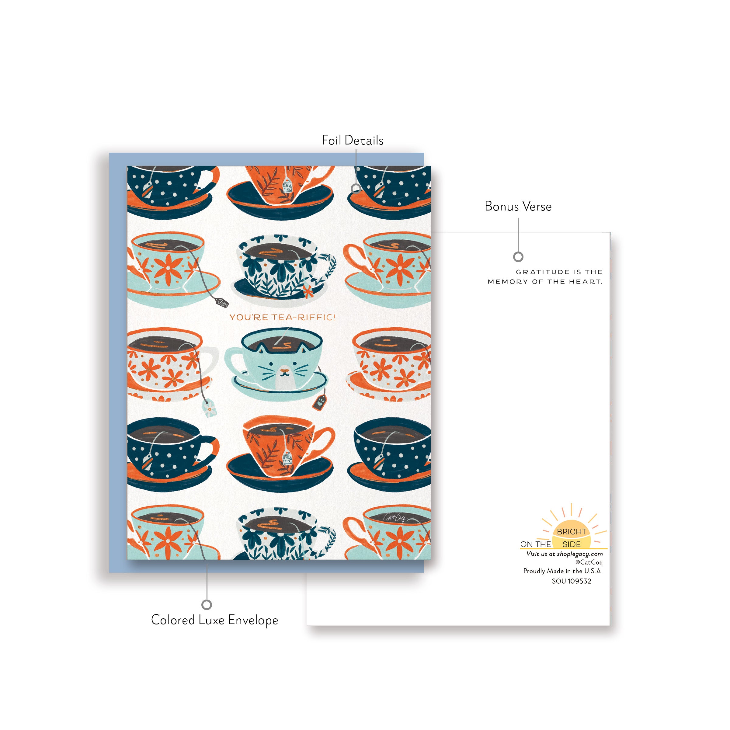 Legacy’s Boutique Size Card is printed on high quality paper. It includes stunning Hot Foil Details and includes a Scripture verse on the back of the card. Comes with a Luxe Colored Paper Envelope and is packaged in cello. Card size: 4.25" x 5.5". Env: 4.3125" x 5.75" (A2). Made in the USA.