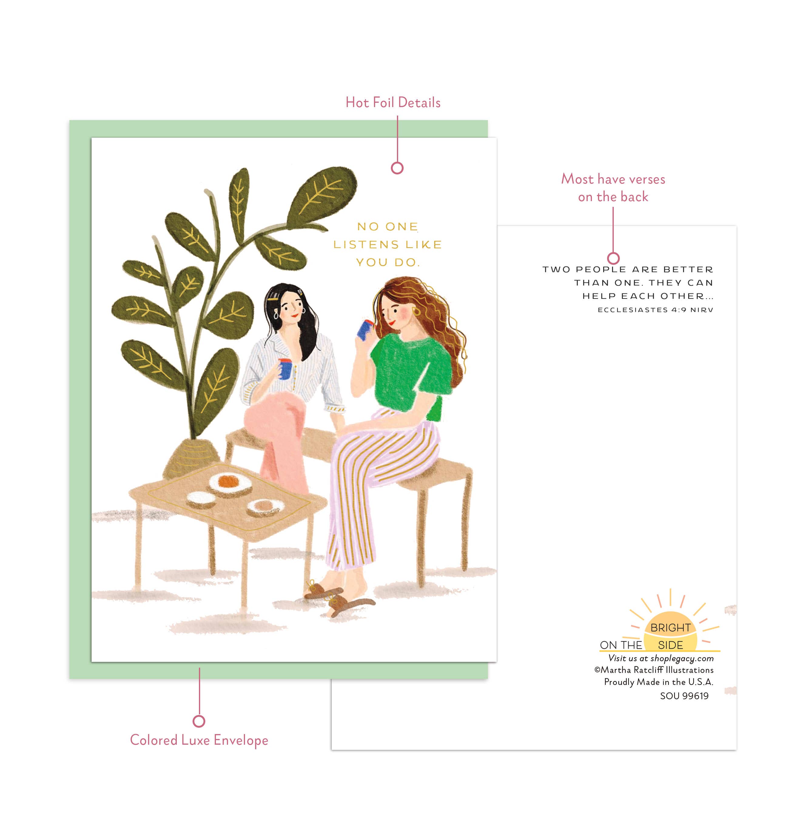 On the Bright Side’s Boutique Size Card is printed on high quality paper. It includes stunning Hot Foil Details and includes a Scripture verse on the back of the card. Comes with a Luxe Colored Paper Envelope and is packaged in cello. Card size: 4.25" x 5.5". Env: 4.3125" x 5.75" (A2). Made in the USA.