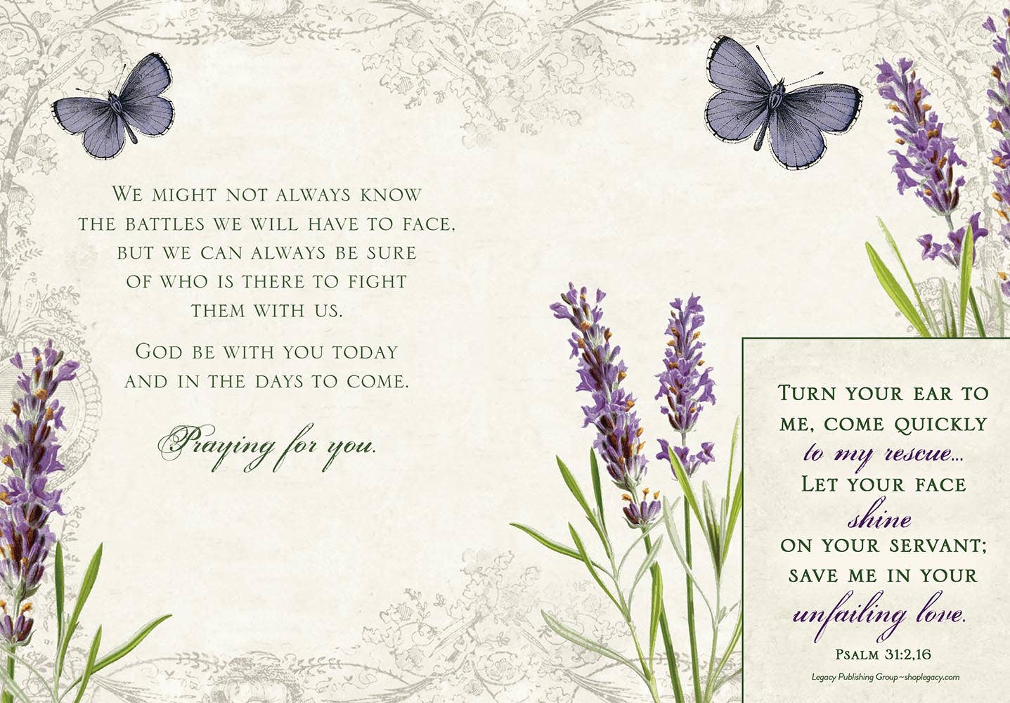 Legacy’s Prayer Greeting Card has inspirational artwork with scripture, a removable prayer card and a coordinating envelope. Simply tear off the prayer card at the perforation and tuck it into your Bible or wallet. It’s two gifts in one! Size: 4.875” x 6.75”. Prayer card size: 2 7/16” x 3 3/8”. Made in the USA.