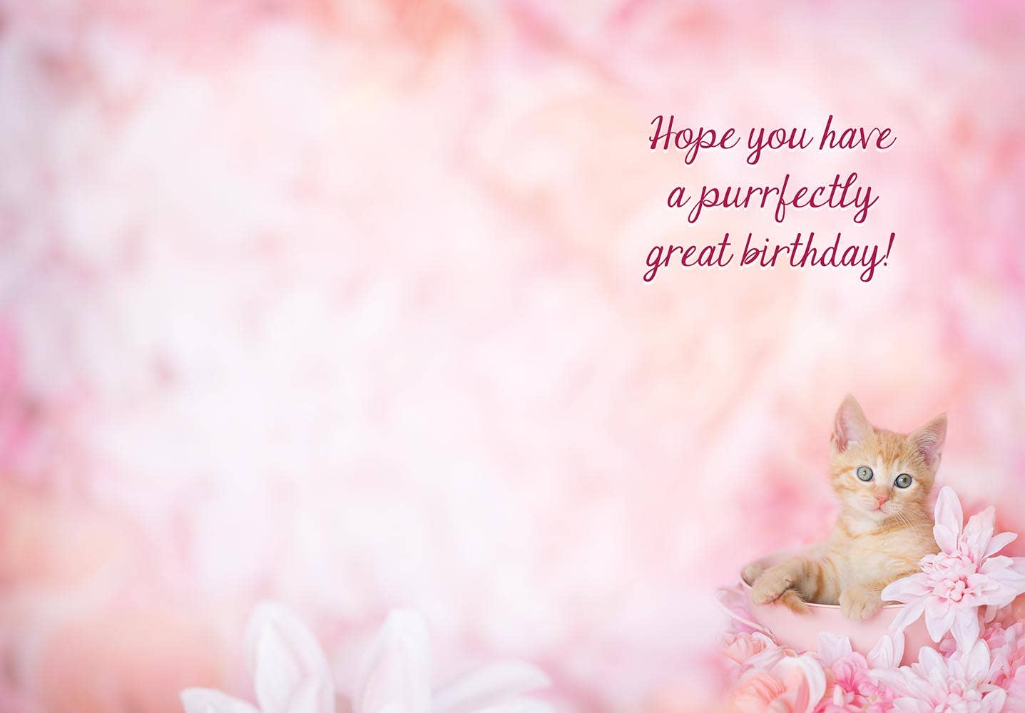 Pink Petal Kitten - Juvenile Birthday Card