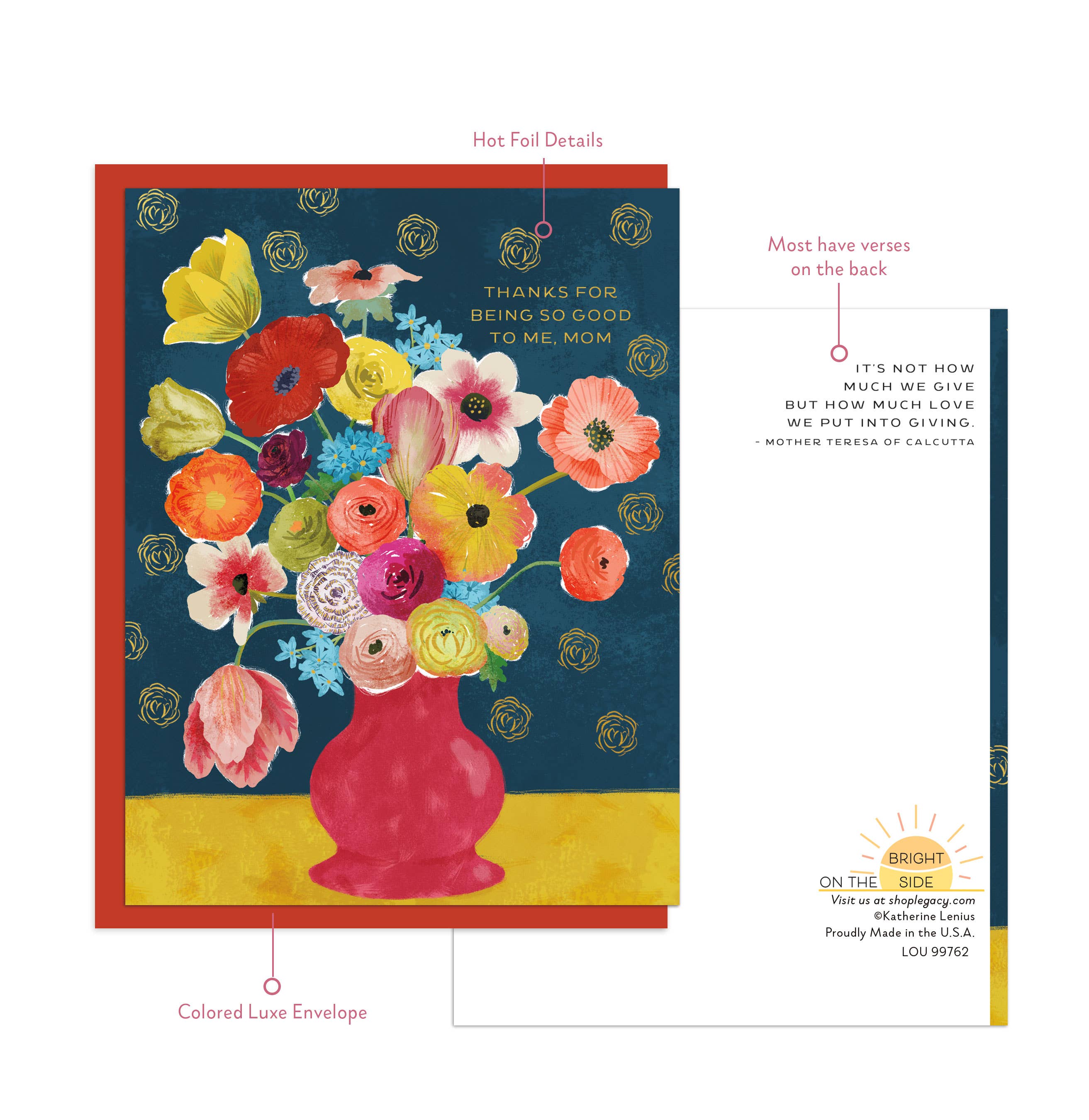 On the Bright Side's Boutique size cards are printed on high quality paper, include stunning Hot Foil Details and most include a bonus verse on the back of the card. They come with a Luxe Colored Paper envelope and packaged in cello. Card size: 4.25" x 5.5". Env: 4.3125" x 5.75" (A2). Made in the USA.