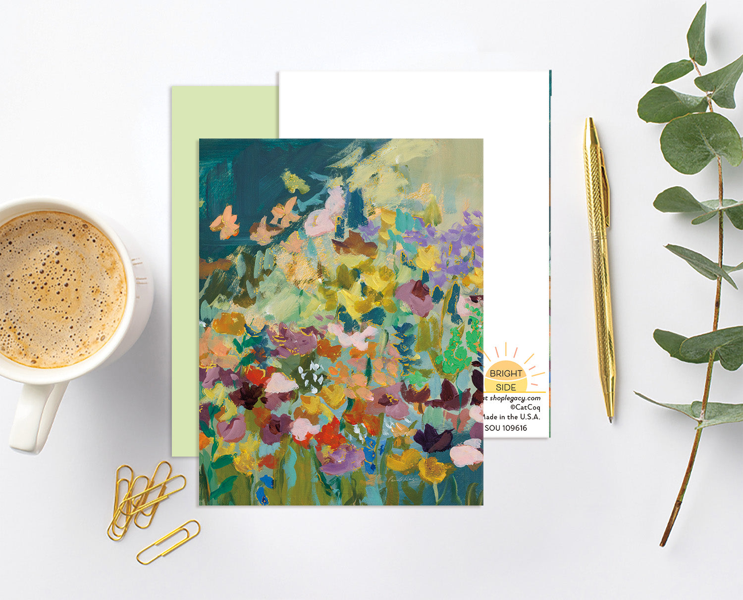 Floral on Green - Blank Card