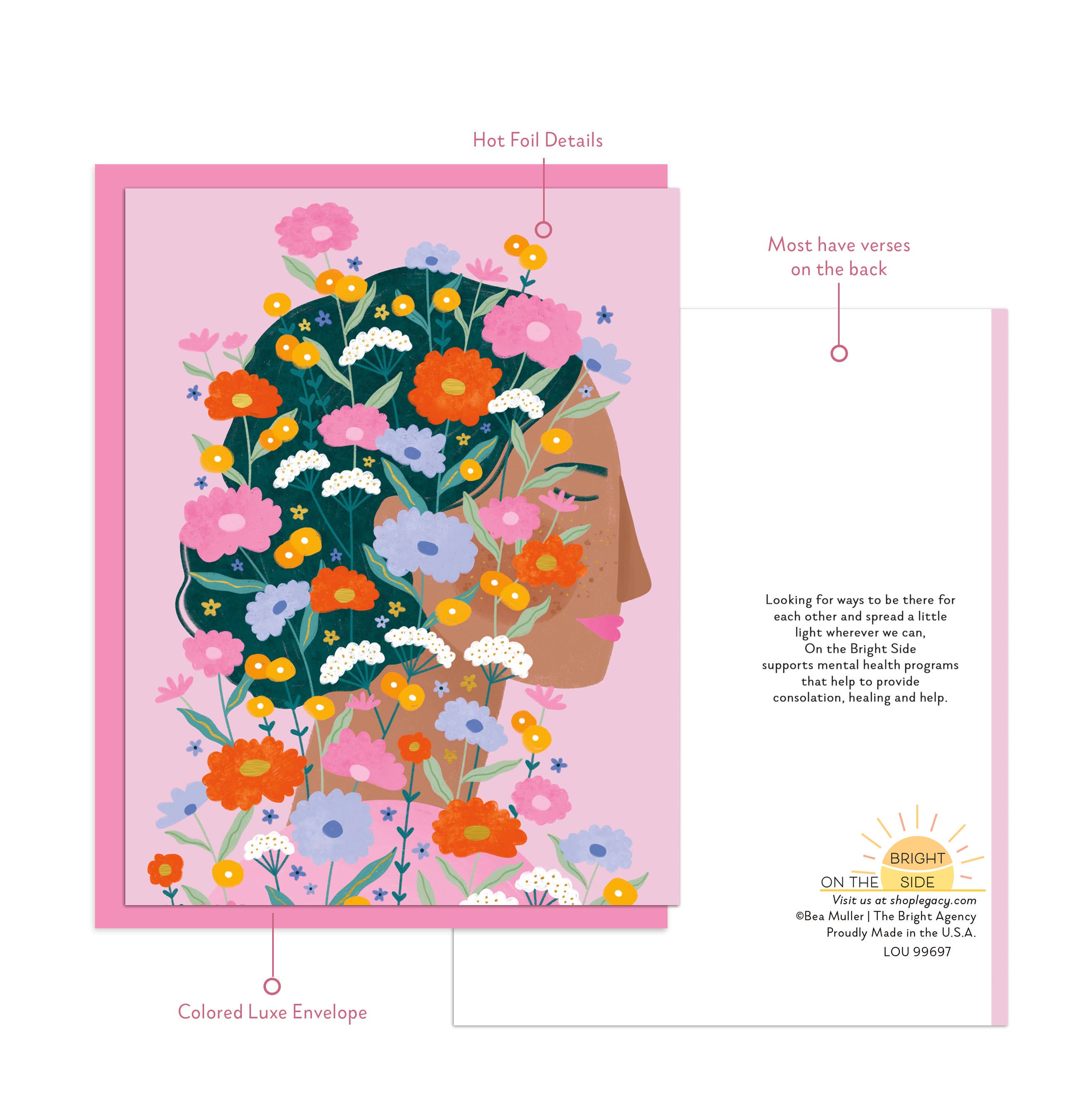 On the Bright Side's Boutique size cards are printed on high quality paper, include stunning Hot Foil Details and most include a bonus verse on the back of the card. They come with a Luxe Colored Paper envelope and packaged in cello. Card size: 4.25" x 5.5". Env: 4.3125" x 5.75" (A2). Made in the USA.