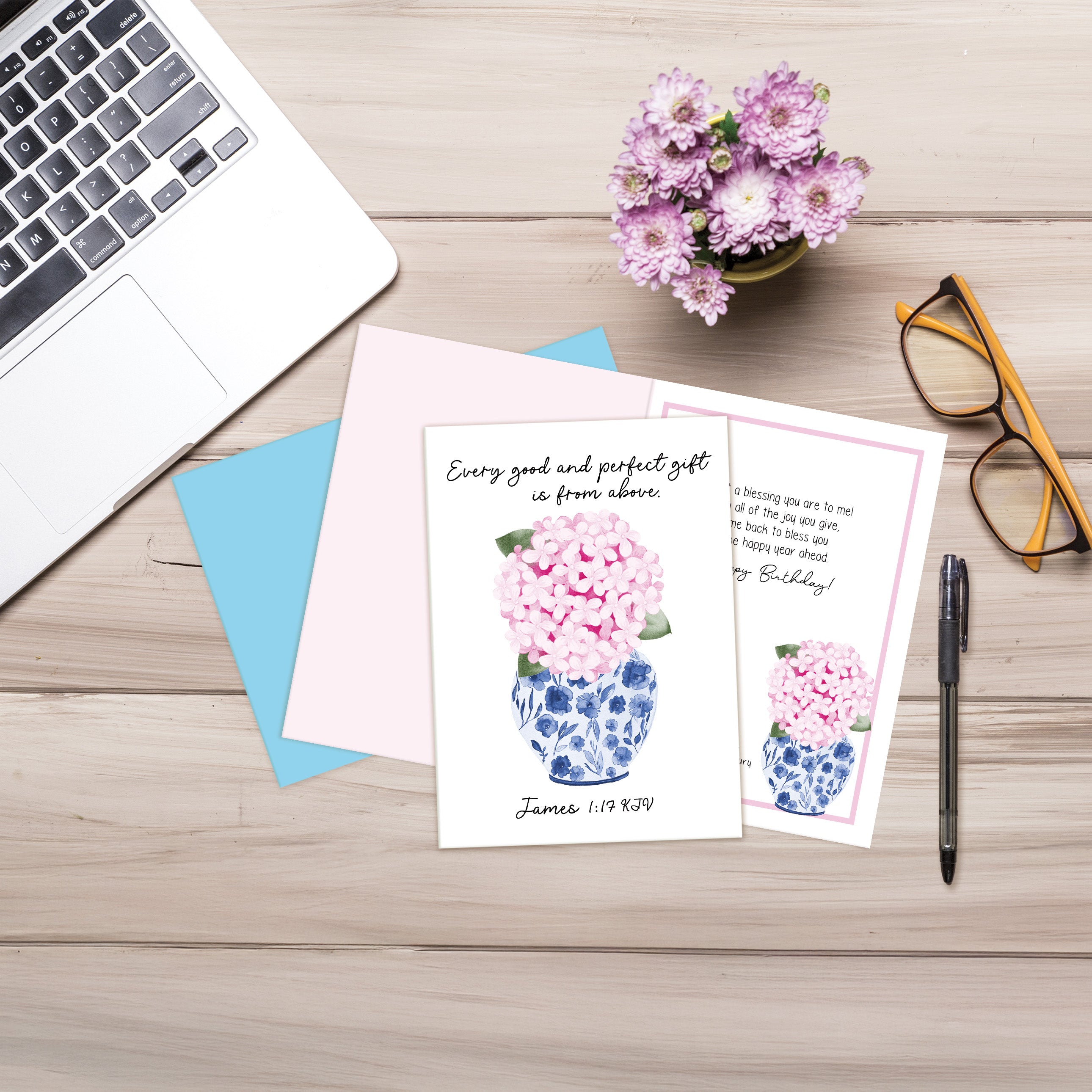 Pink Hydrangea - Faith Birthday Card