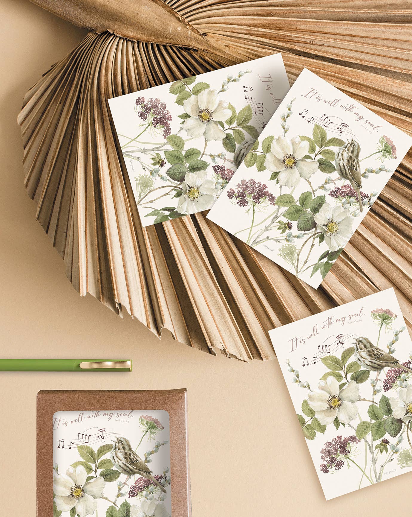 Legacy’s Faith Notecards come packaged in a Kraft box with a clear acetate window. Each box contains 10 blank note cards featuring an inspirational scripture and 10 white envelopes. The cards are printed on 50% post-consumer/industrial recycled paper and are made in the USA. Card Size: 4.125” x 5.5”.