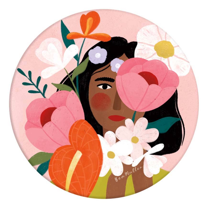Girl Behind Flowers Ceramic Car Coasters