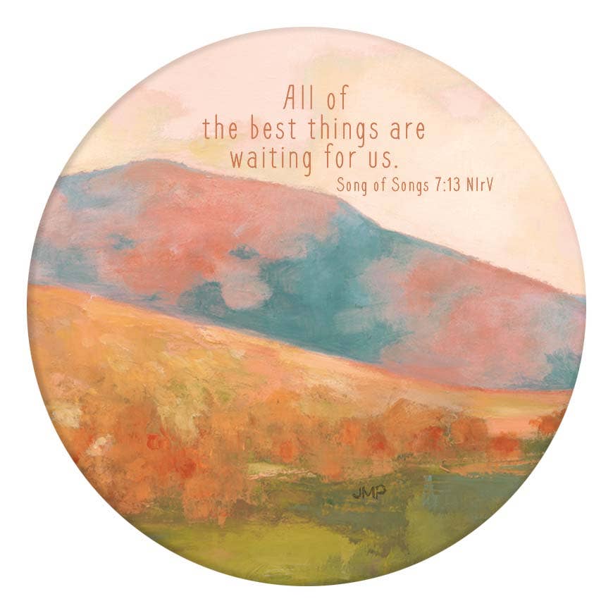 Legacy’s Faith absorbent ceramic coaster fits snuggly into your car cup holder and features inspirational scripture. It includes a strategic divot on one side so they can be easily popped in and out. They also keep your car cupholder clean and are washable. Size 2.65" in diameter. Made in the USA.