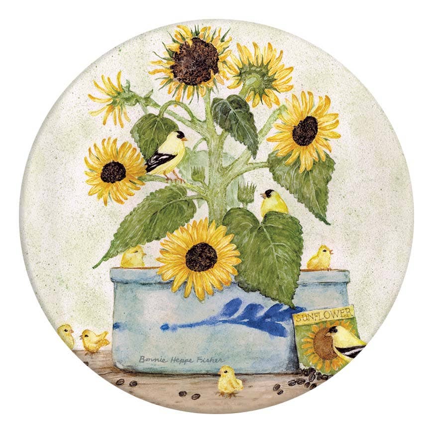 Sunflower Crock Ceramic Car Coasters