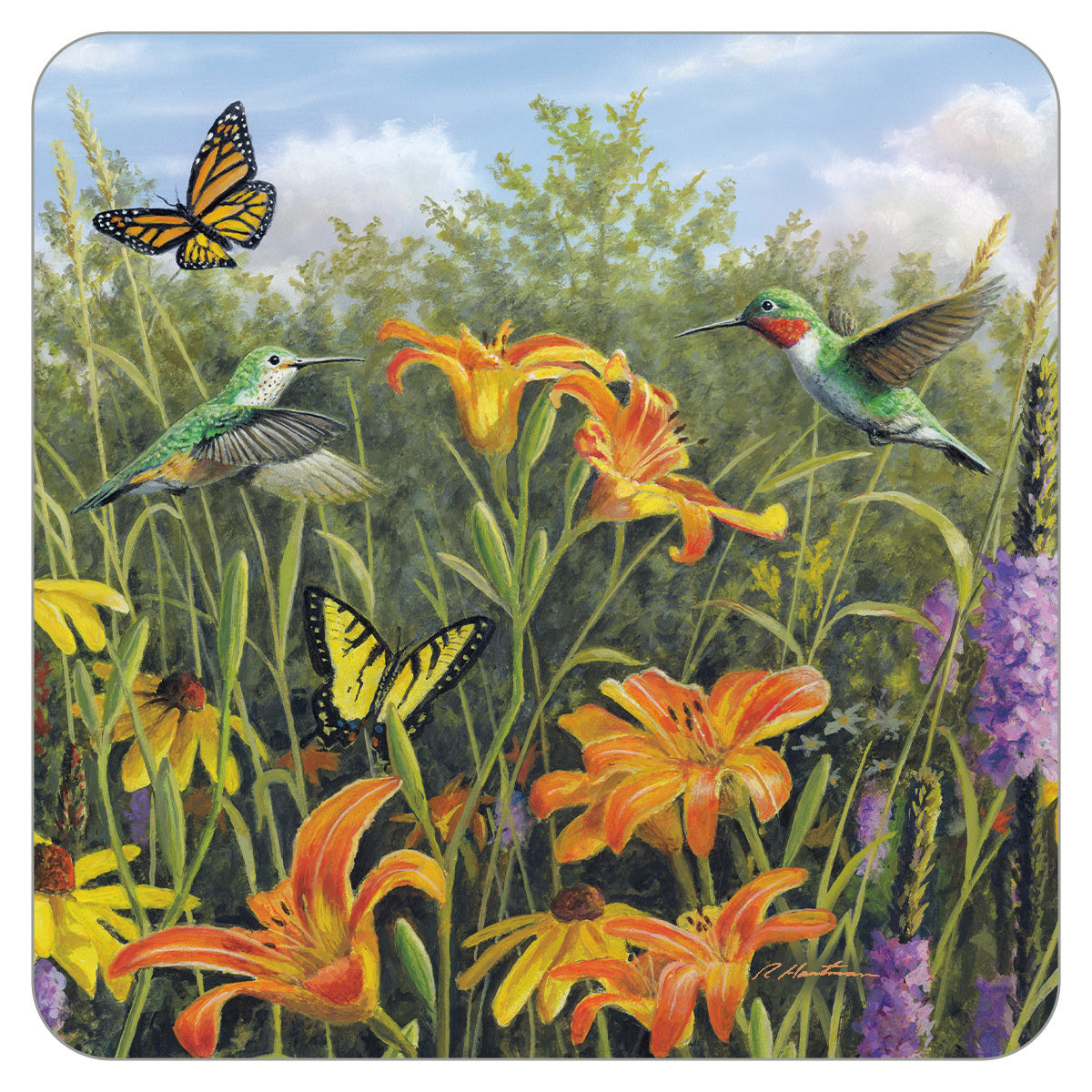 Hummingbirds in the Flowers Coaster