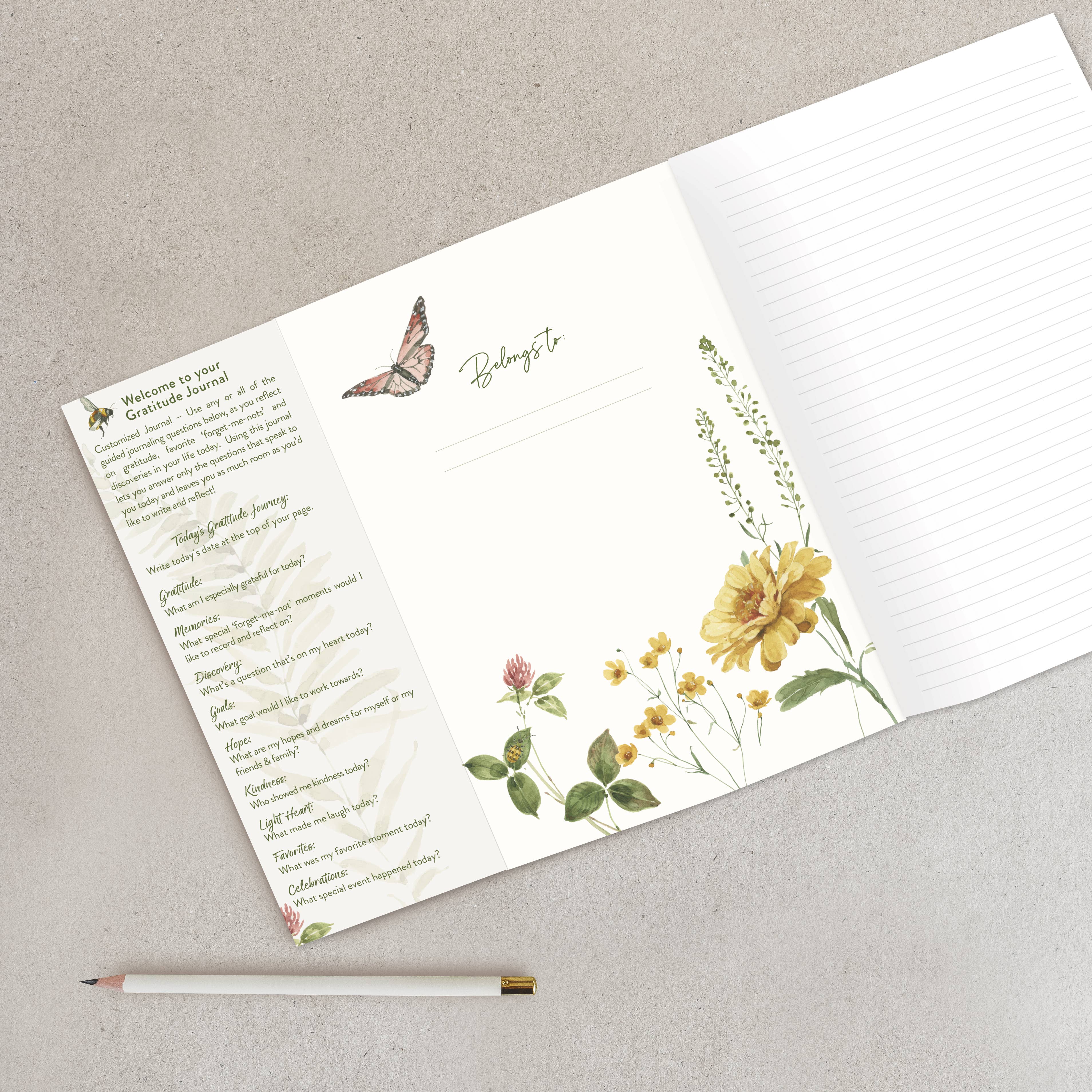 Legacy’s soft cover Gratitude Journal comes in a generous size, with a special binding that lets your book lay flat, a cover made from luxe embossed paper with front and back flaps and 192 lined pages. The reflection questions are printed on the inside flap of your front cover and uplifting quotes on the inside flap of your back cover. You can even use the flaps as a bookmark to keep your place. Size: 6 3/4” x 9 3/8” x ½”. Made in China.