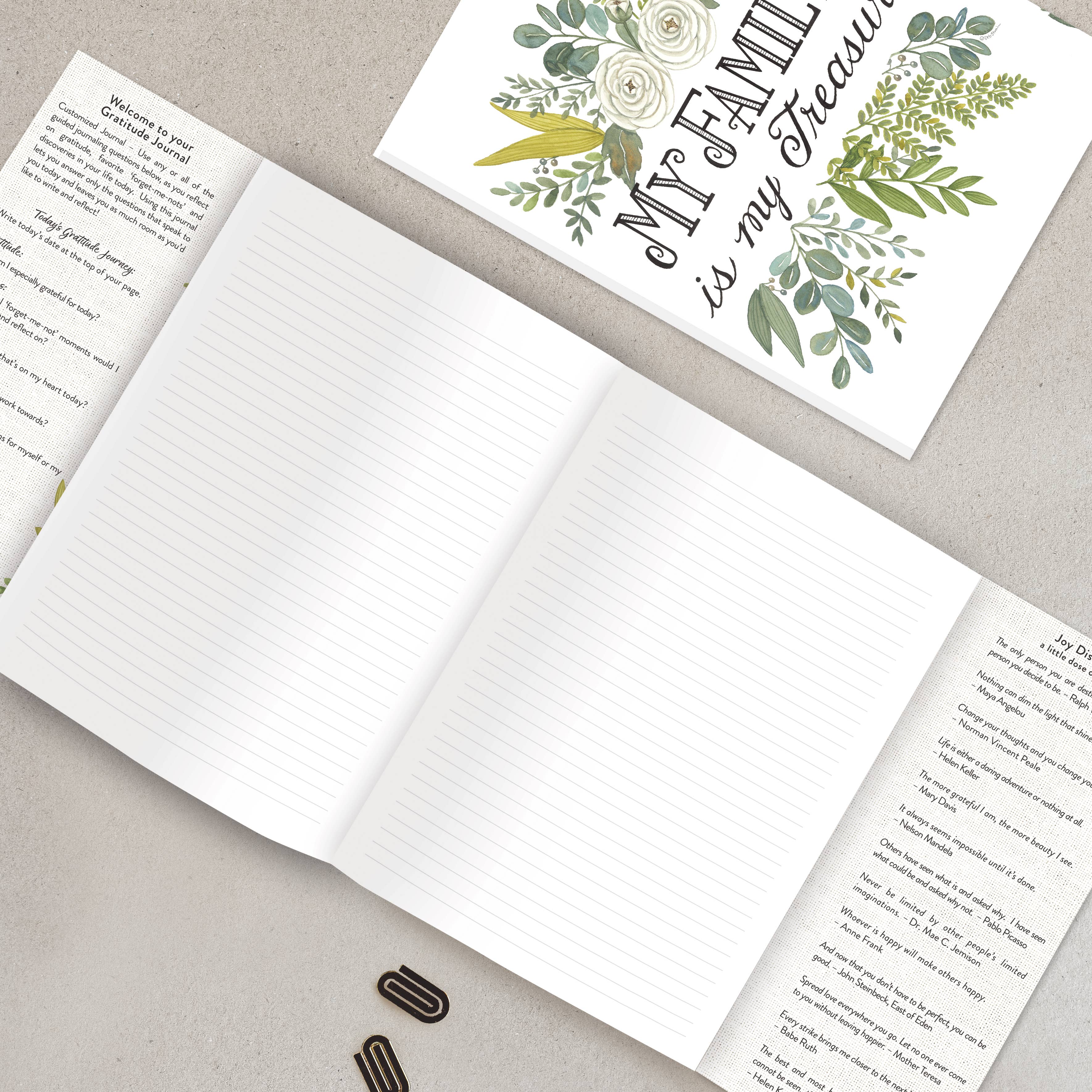 Legacy’s soft cover Gratitude Journal comes in a generous size, with a special binding that lets your book lay flat, a cover made from luxe embossed paper with front and back flaps and 192 lined pages. The reflection questions are printed on the inside flap of your front cover and uplifting quotes on the inside flap of your back cover. You can even use the flaps as a bookmark to keep your place. Size: 6 3/4” x 9 3/8” x ½”. Made in China.