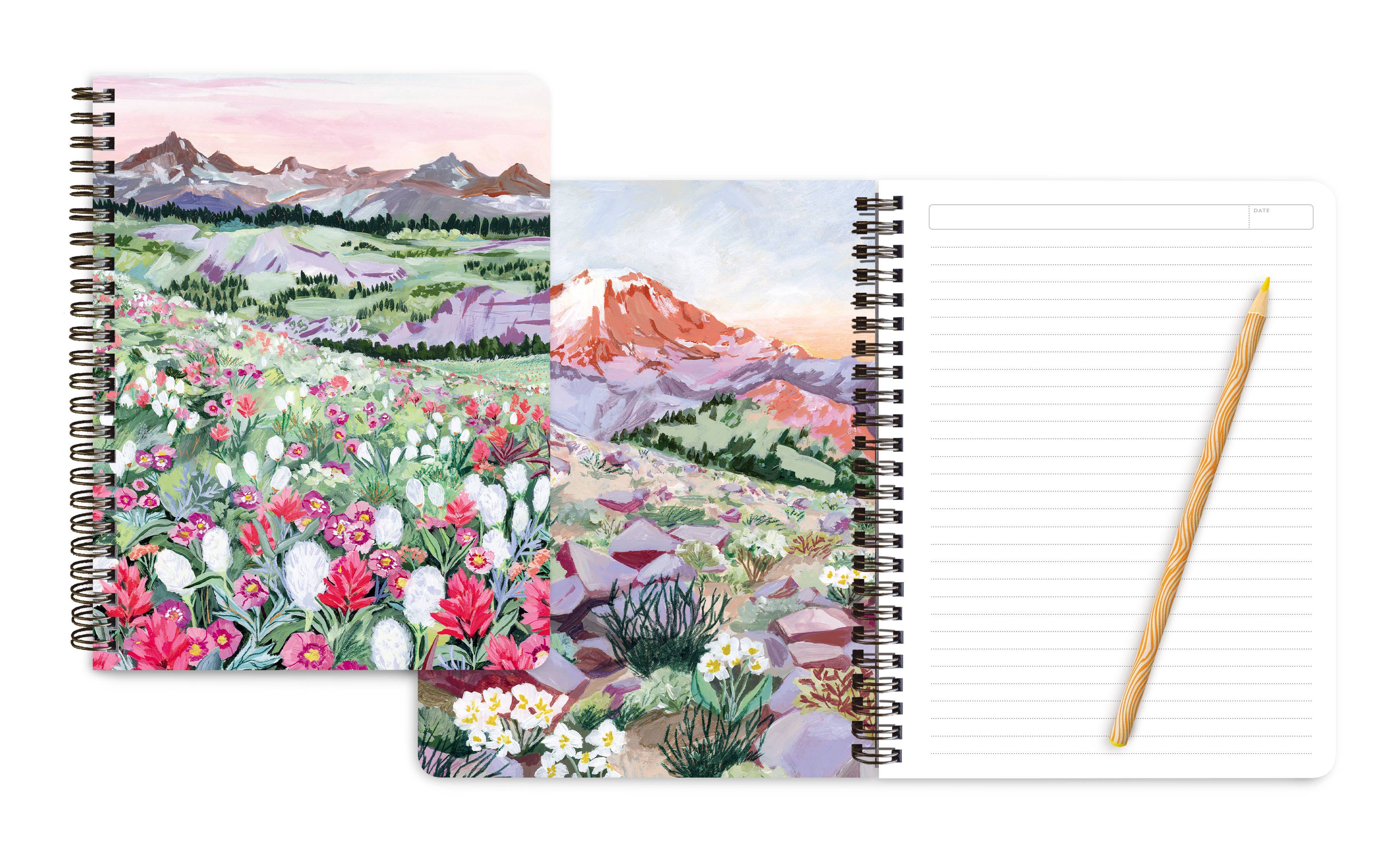 On the Bright Side's Hot Foil Medium Notebooks are hot foil stamped on the cover, with beautiful detailing! They contain 200 college-ruled, perforated pages. The covers are printed on durable cover stock, stamped with hot foil, and have a gold metal wire binding. Each notebook has a fully designed front and back cover and has unique inside liners. Size: 6.625” x 8.25”. Made in China.