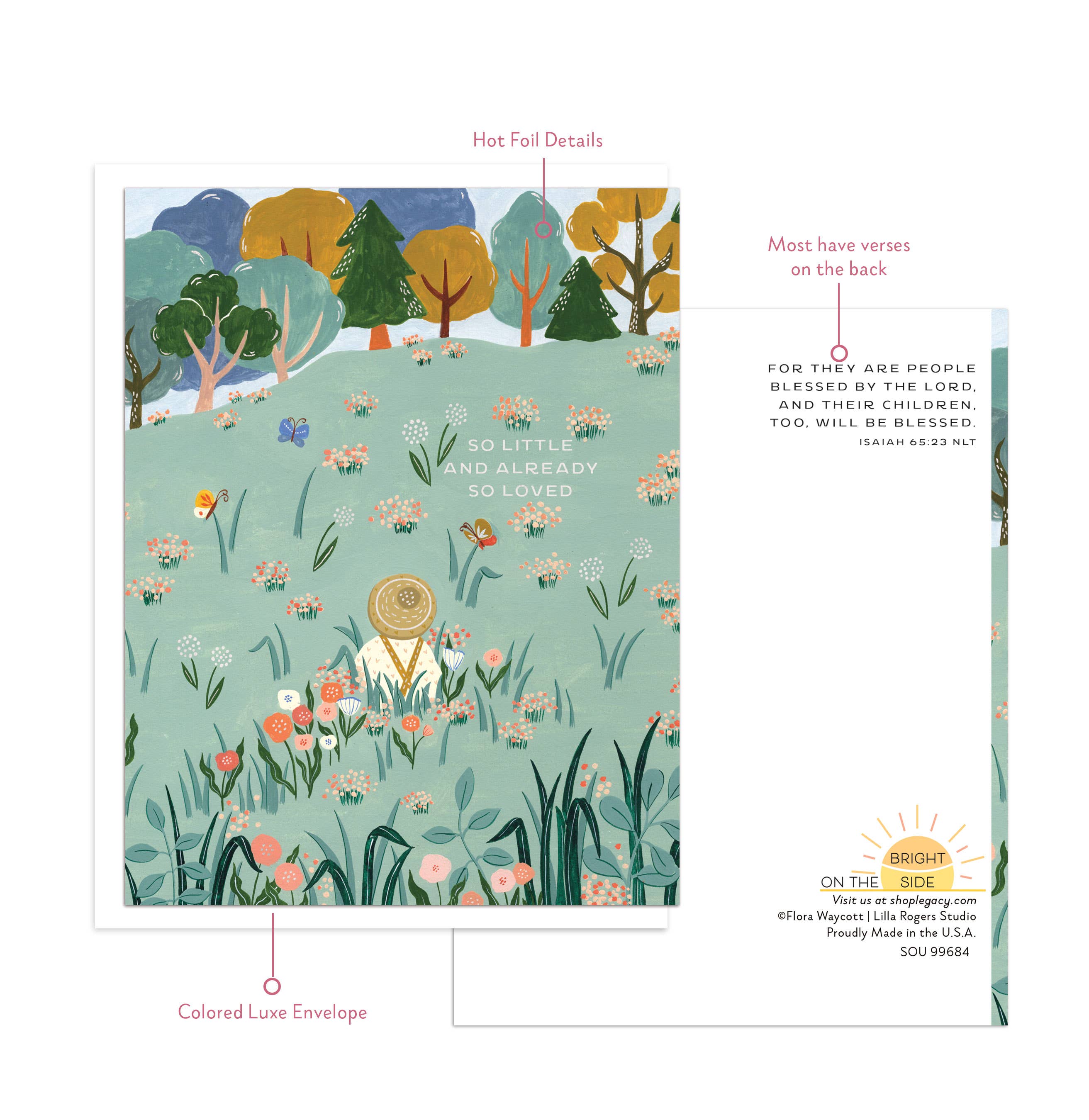 On the Bright Side’s Boutique Size Card is printed on high quality paper. It includes stunning Hot Foil Details and includes a Scripture verse on the back of the card. Comes with a Luxe Colored Paper Envelope and is packaged in cello. Card size: 4.25" x 5.5". Env: 4.3125" x 5.75" (A2). Made in the USA.