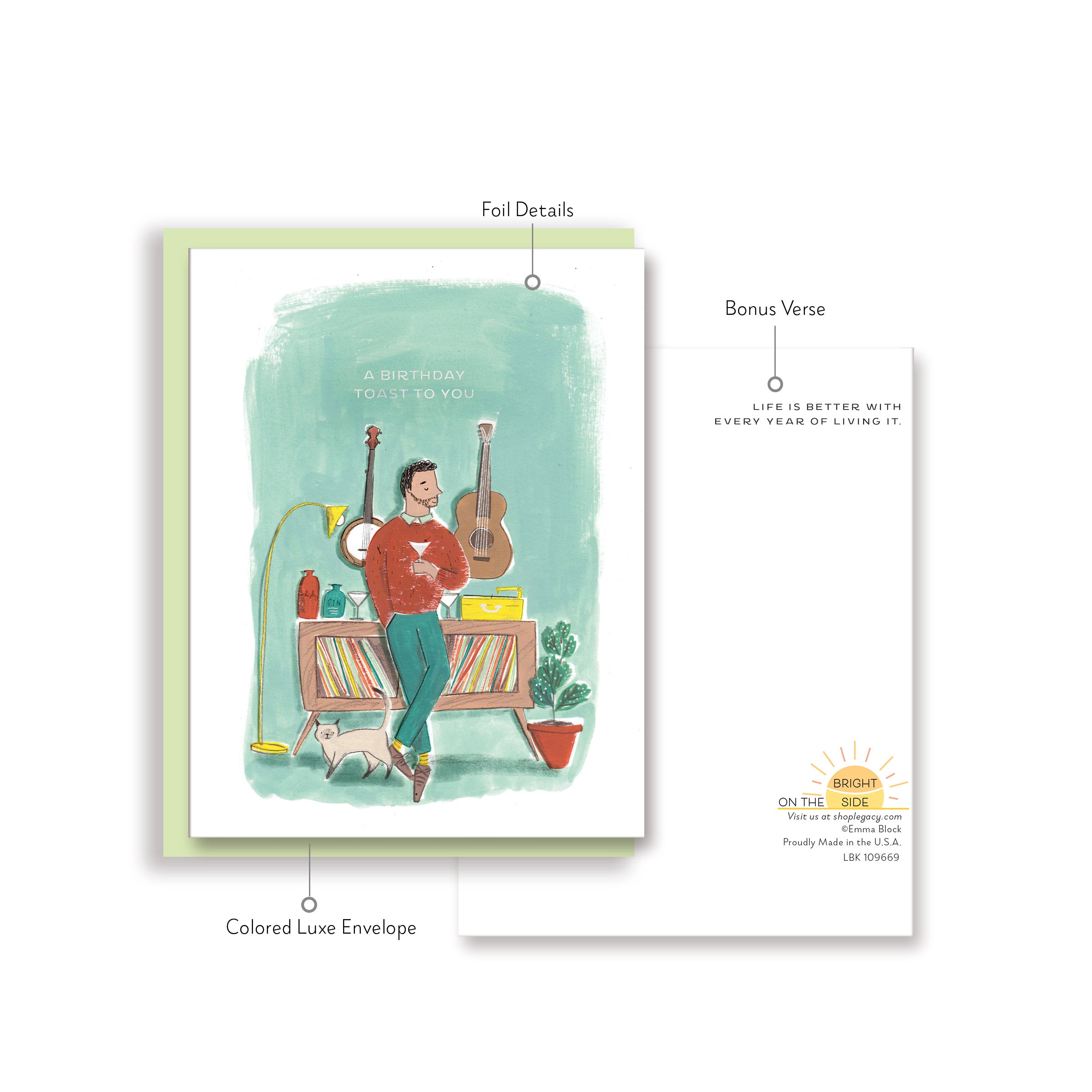 On the Bright Side's Boutique size cards are printed on high quality paper, include stunning Hot Foil Details and most include a bonus verse on the back of the card. They come with a Luxe Colored Paper envelope and packaged in cello. Card size: 4.25" x 5.5". Env: 4.3125" x 5.75" (A2). Made in the USA.