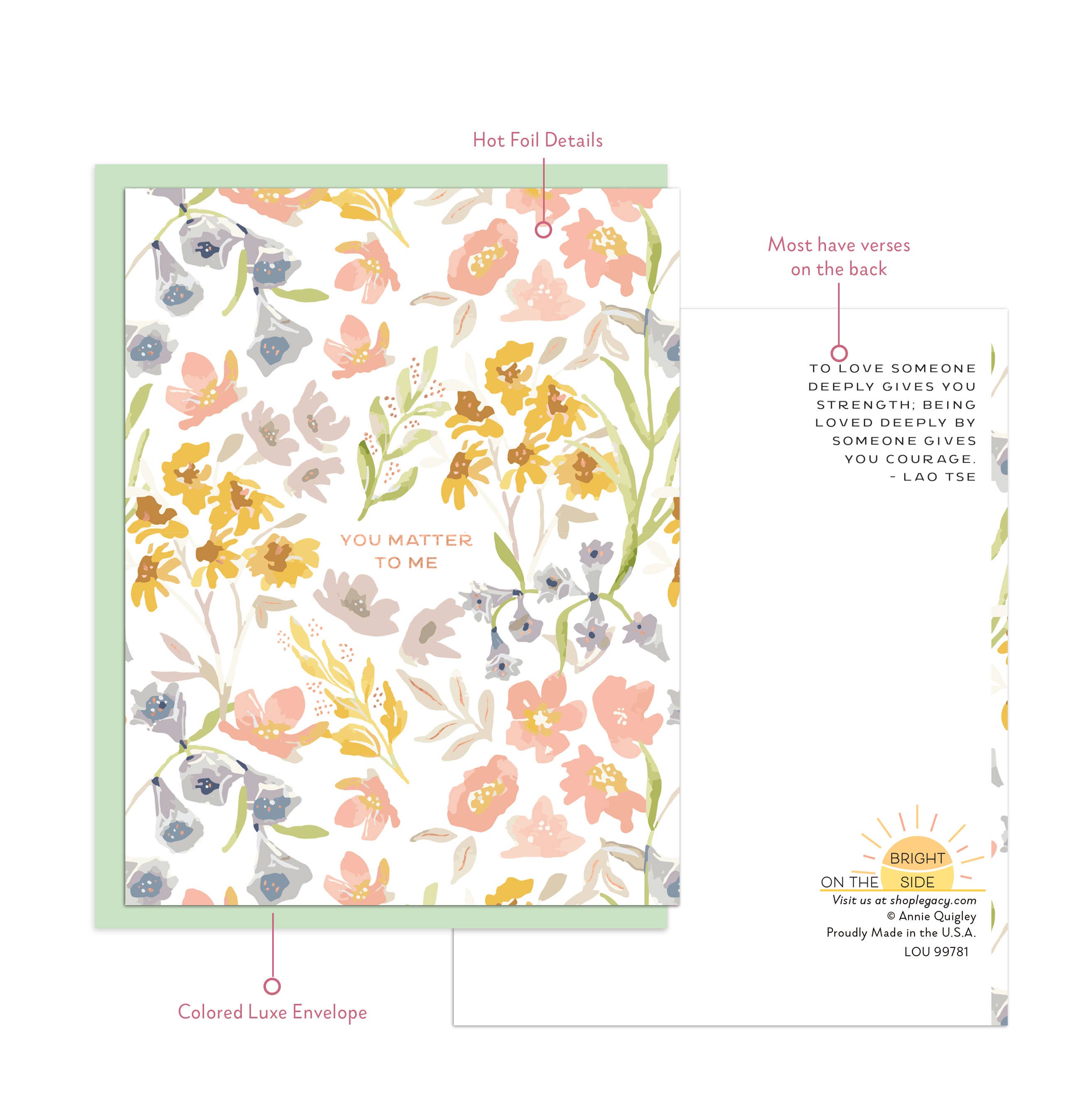 On the Bright Side's Boutique size cards are printed on high quality paper, include stunning Hot Foil Details and most include a bonus verse on the back of the card. They come with a Luxe Colored Paper envelope and packaged in cello. Card size: 4.25" x 5.5". Env: 4.3125" x 5.75" (A2). Made in the USA.
