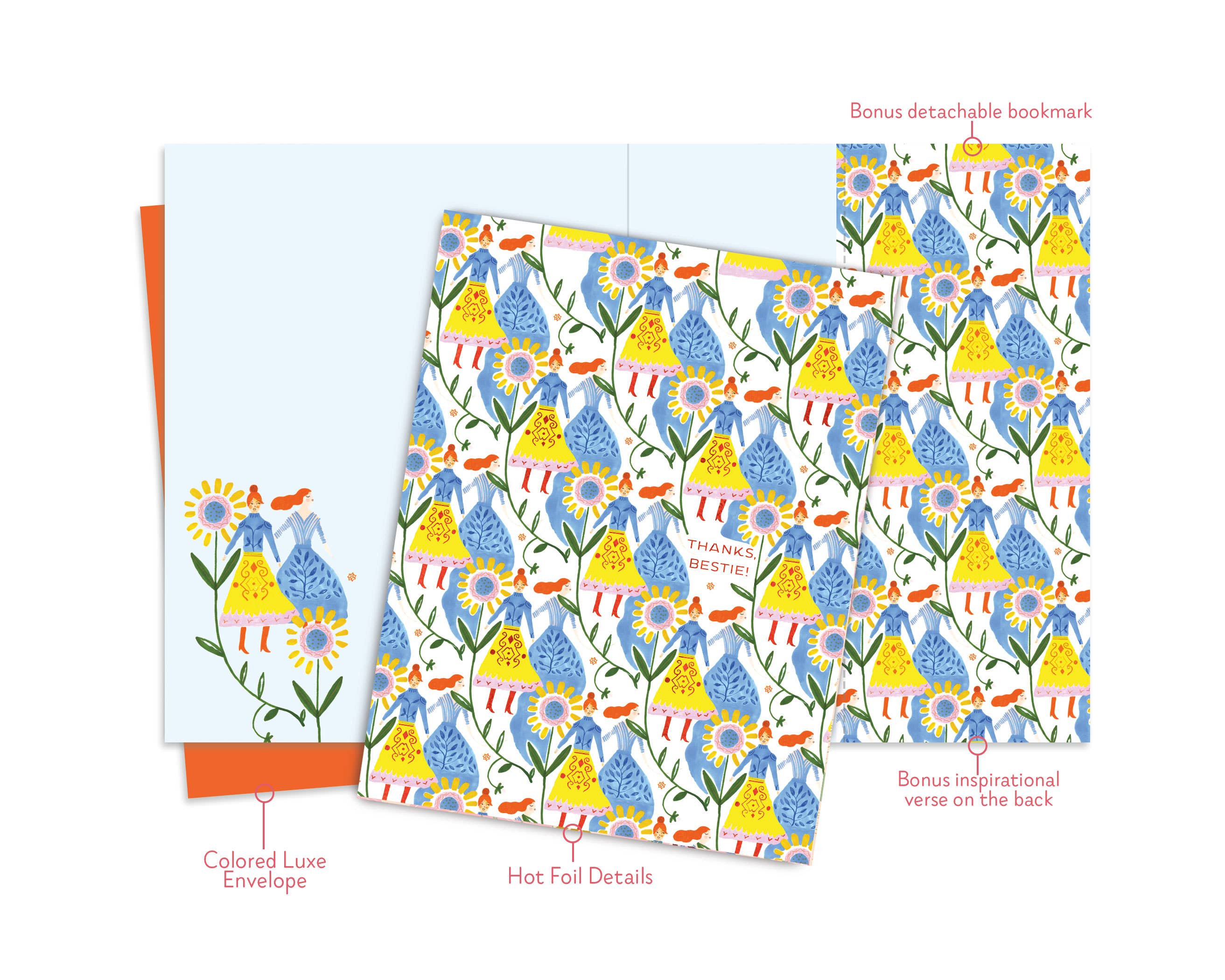 On the Bright Side's Boutique size Hot Foil Stamped Bookmark card is printed on high quality paper, includes stunning Hot Foil Details and has a detachable bookmark that also stands up as an inspirational card. Comes with a Luxe Colored Paper envelope and packaged in cello. Card size: 4.25" x 5.5". Env: 4.3125" x 5.75" (A2). Made in the USA.
