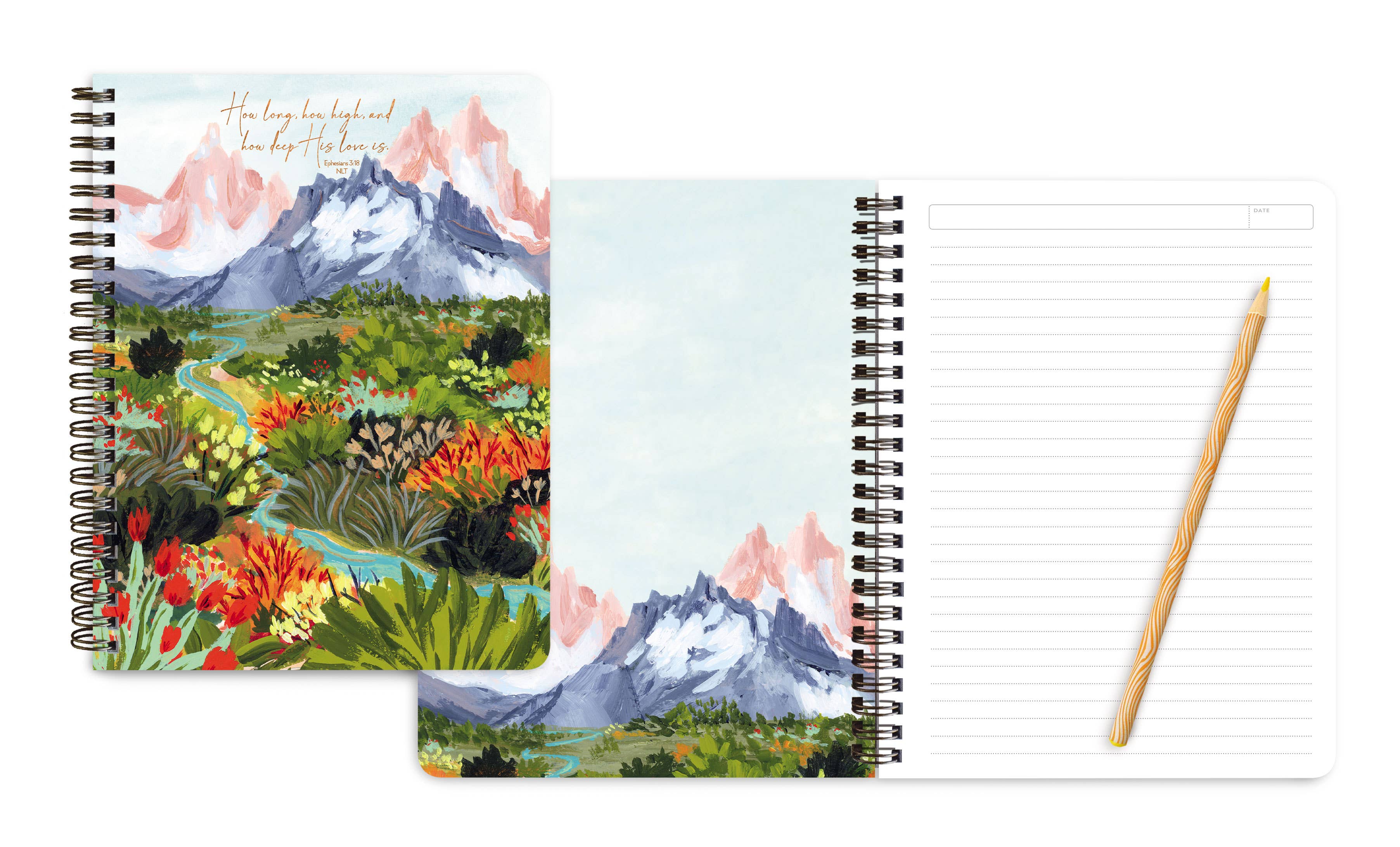 On the Bright Side's Hot Foil Faith Medium Notebooks are hot foil stamped on the cover, with beautiful detailing! They contain 200 college-ruled, perforated pages. The covers are printed on durable cover stock, stamped with hot foil, feature an inspirational scripture, and have a gold metal wire binding. Each notebook has a fully designed front and back cover and has unique inside liners. Size: 6.625” x 8.25”. Made in China.