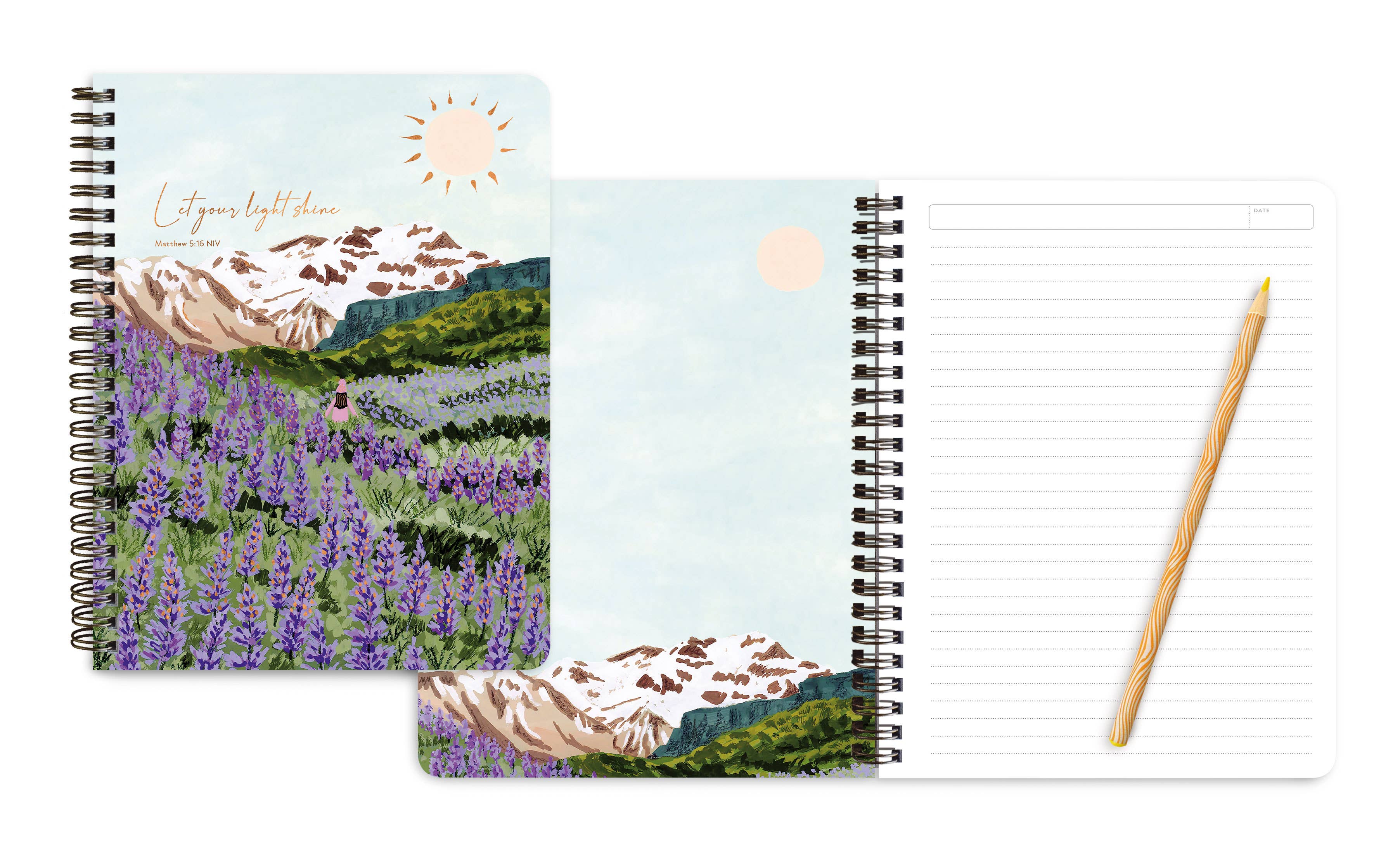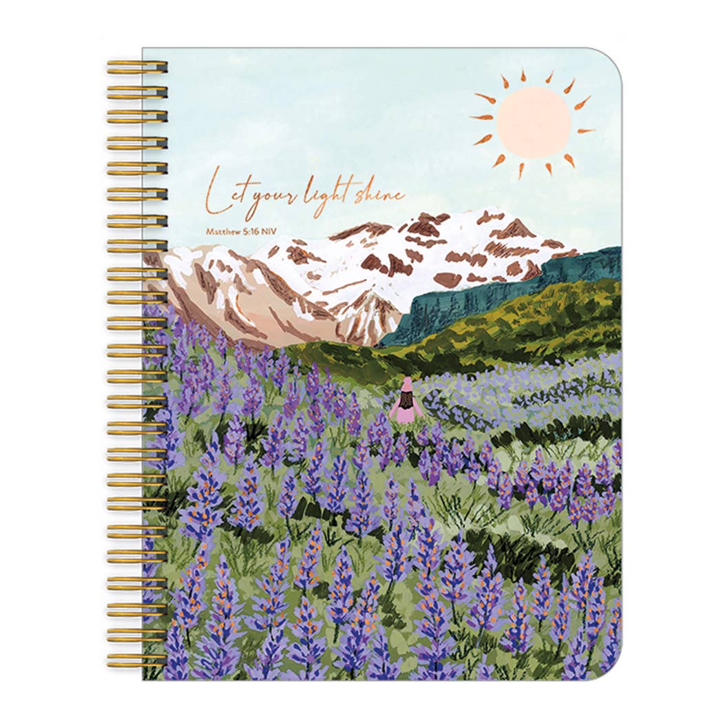 On the Bright Side's Hot Foil Faith Medium Notebooks are hot foil stamped on the cover, with beautiful detailing! They contain 200 college-ruled, perforated pages. The covers are printed on durable cover stock, stamped with hot foil, feature an inspirational scripture, and have a gold metal wire binding. Each notebook has a fully designed front and back cover and has unique inside liners. Size: 6.625” x 8.25”. Made in China.
