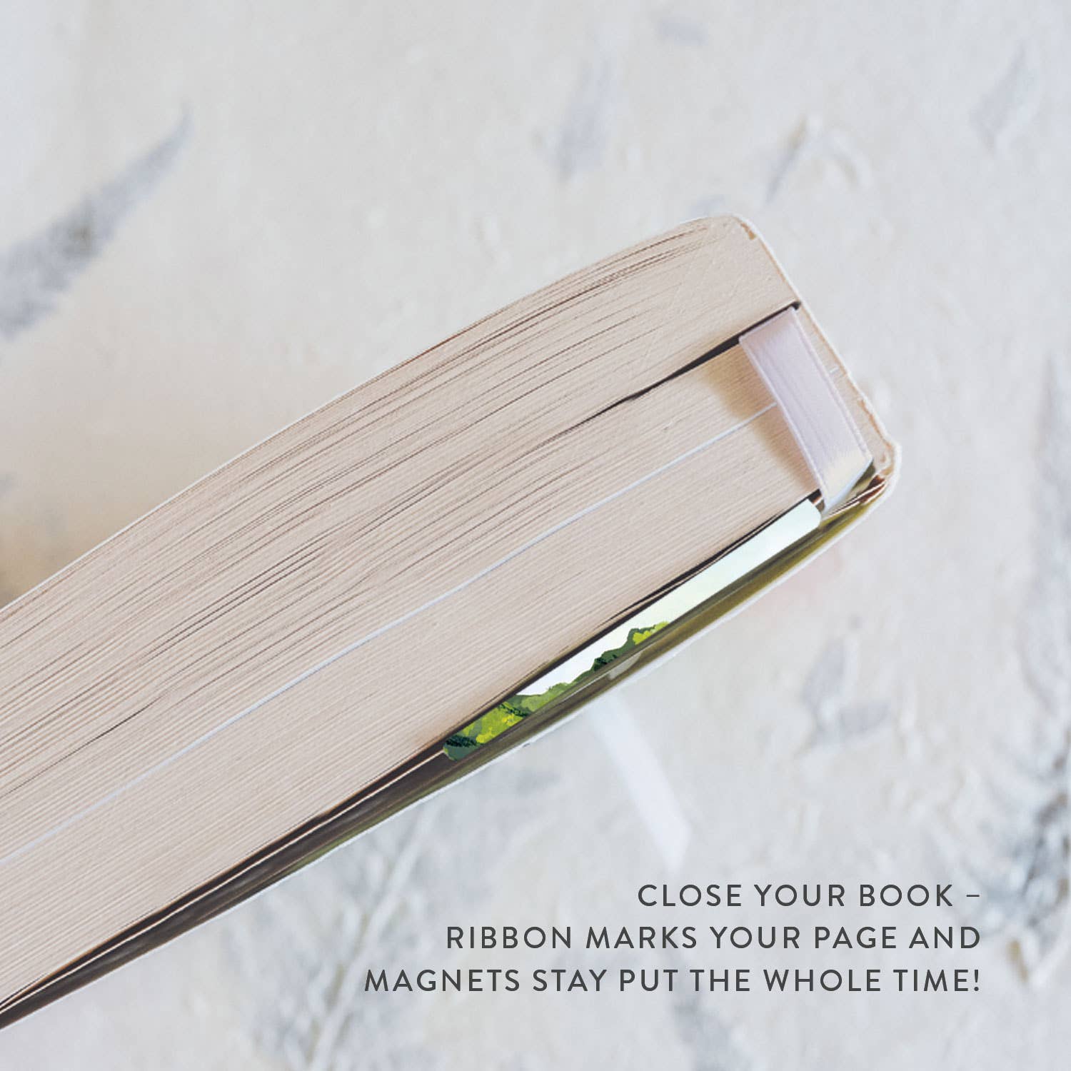 On the Bright Side's Faith Ribbon Bookmarks are the ultimate bookmark and include a scripture feature! They’ll stay in your book until you've finished reading it and won't ever get lost. This sturdy, magnetic, laminated bookmark, clips right onto your back page. The attached coordinating ribbon will mark your place. It works with all types of books, even paperbacks. Size: 1 11/16" x 2 1/2" x 1/8". Made in the USA.