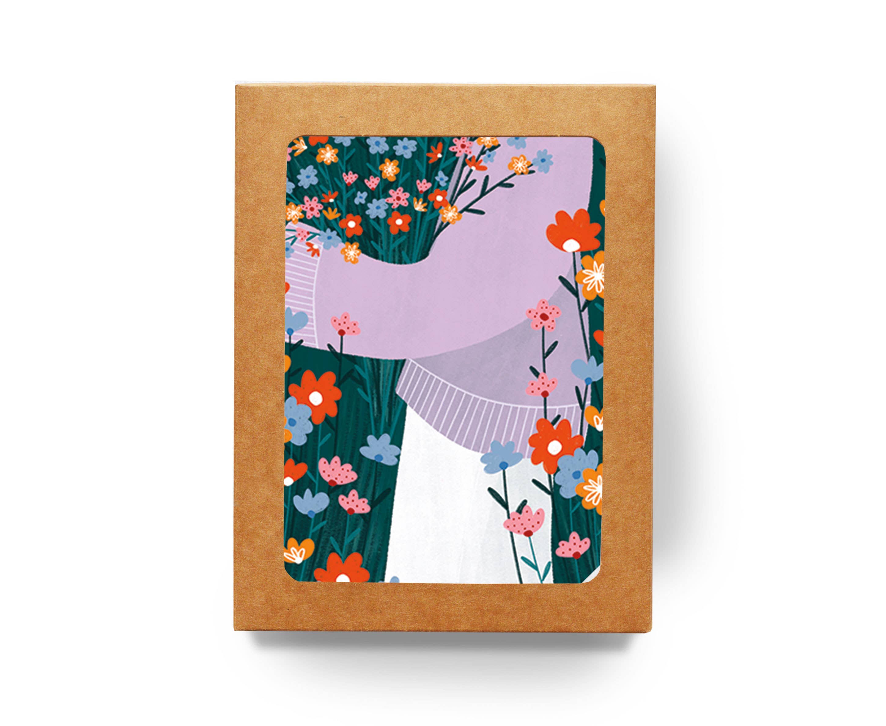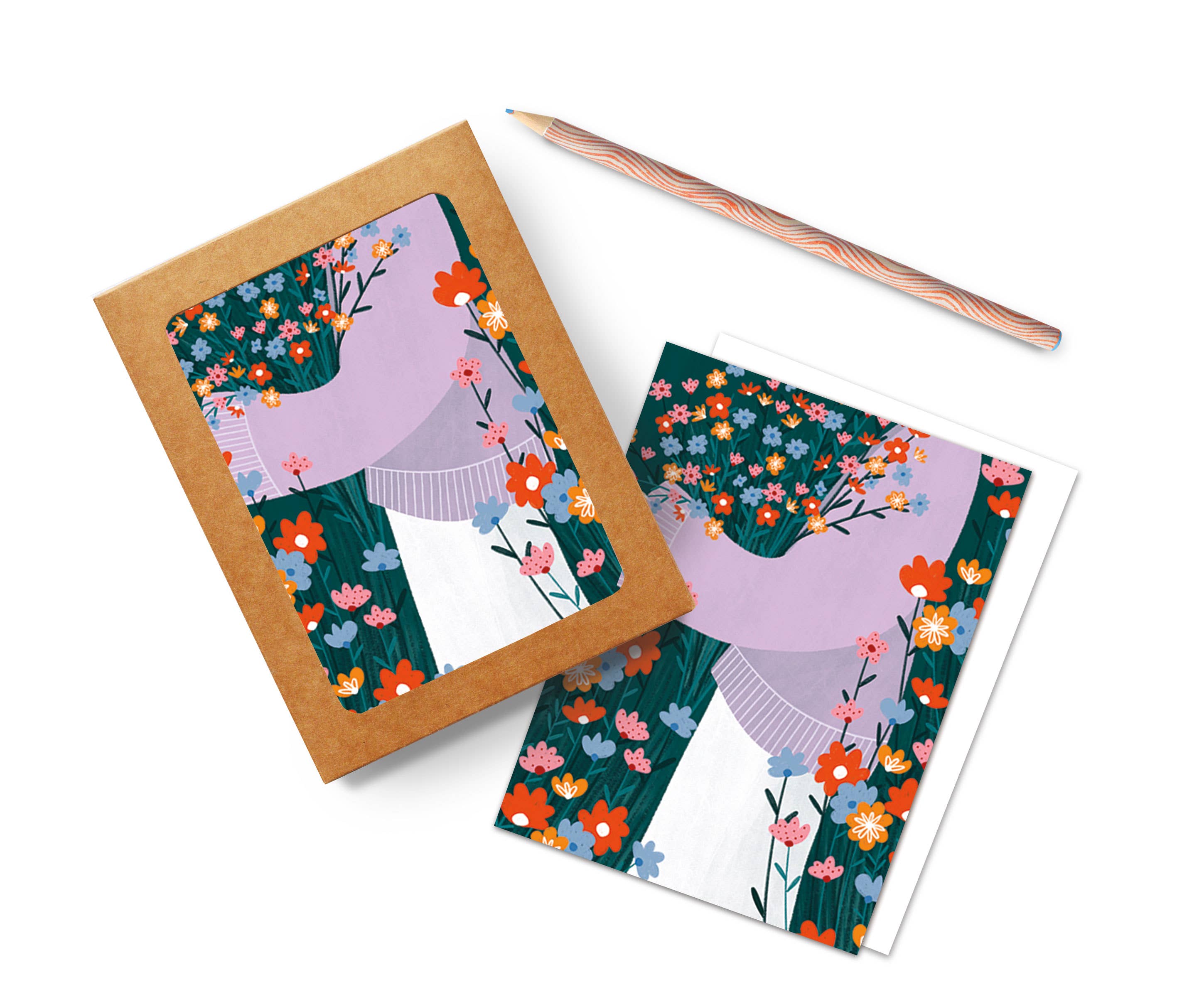 On the Bright Side's Notecards come packaged in a Kraft box with a clear acetate window. Each box contains 10 blank note cards and 10 white envelopes. The cards are printed on 50% post-consumer/industrial recycled paper and are made in the USA. Card Size: 4.125” x 5.5”.