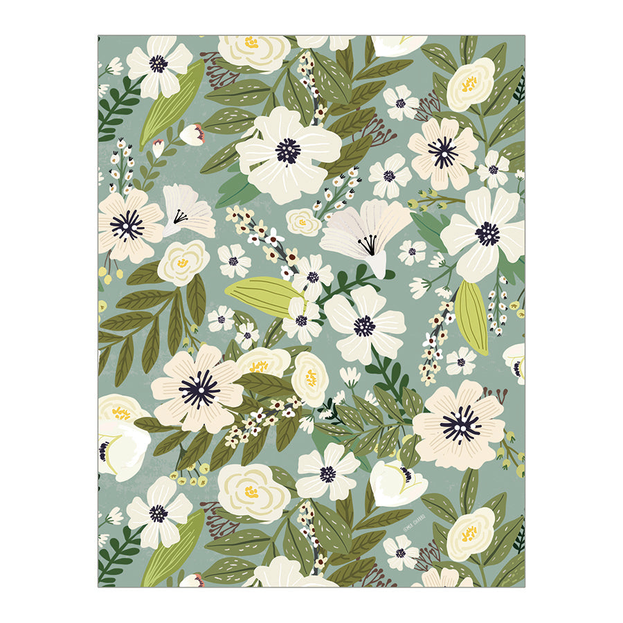 Floral on Green Notecard Boxed Set w/ Foil
