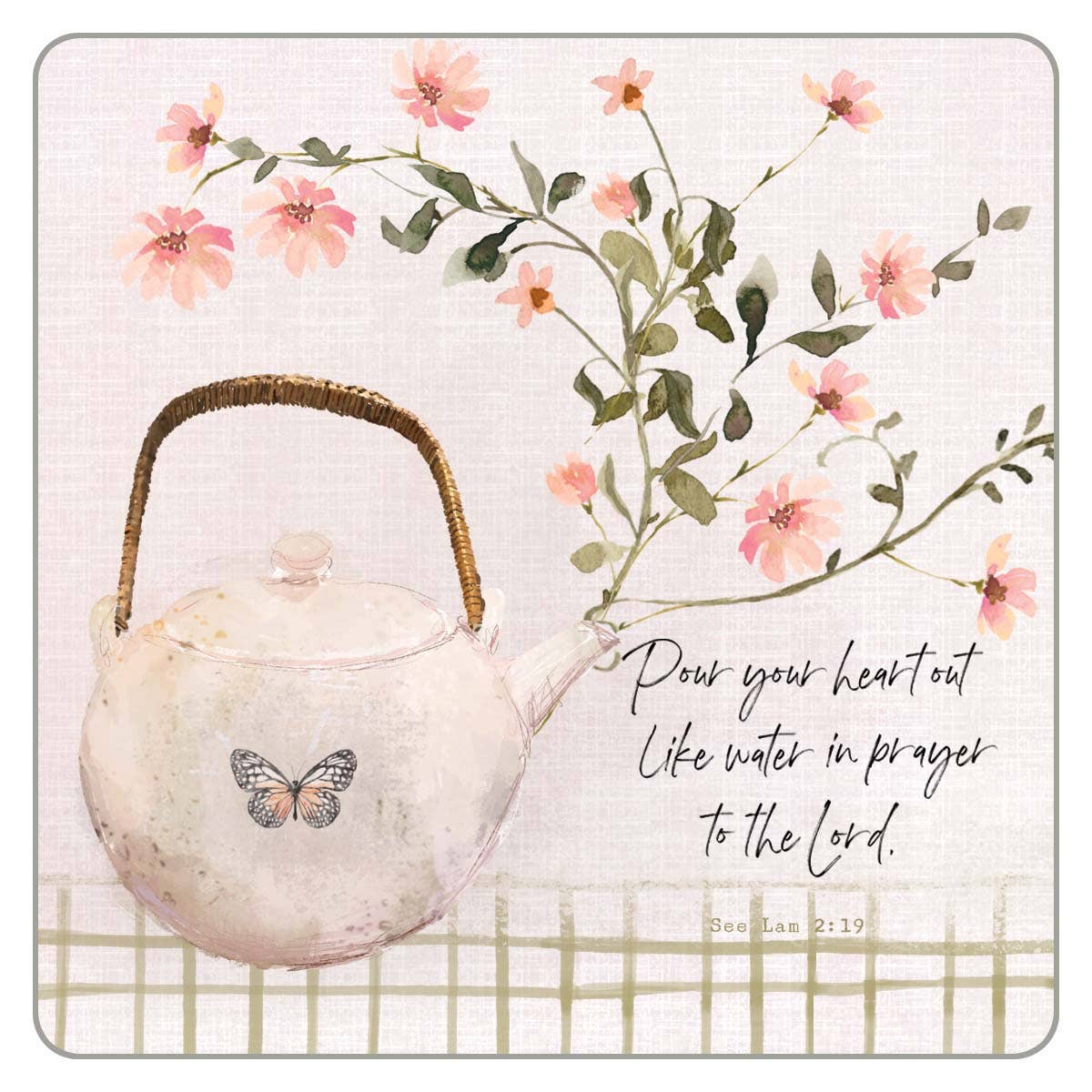 Legacy’s best-selling heat and water resistant Faith coasters are cork backed to withstand years of use and feature inspirational scripture! A PERFECT point-of-purchase impulse item that customers love to mix + match and create their own unique set. Size: 3.75” x 3.75”. Made in the USA.